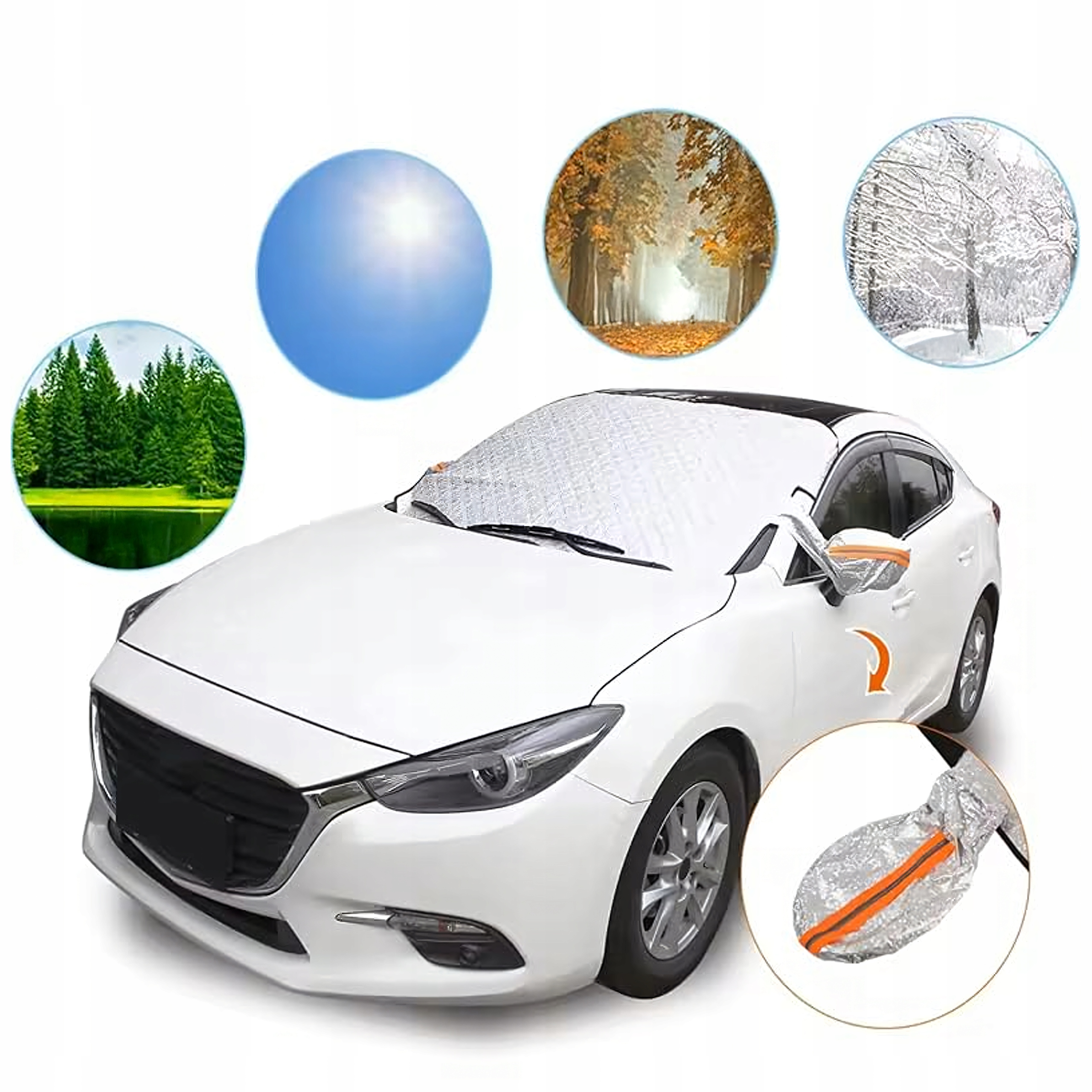 Главная Аксессуары Защитный коврик/накладка на лобовое стекло и зеркала автомобиля, 235 см.